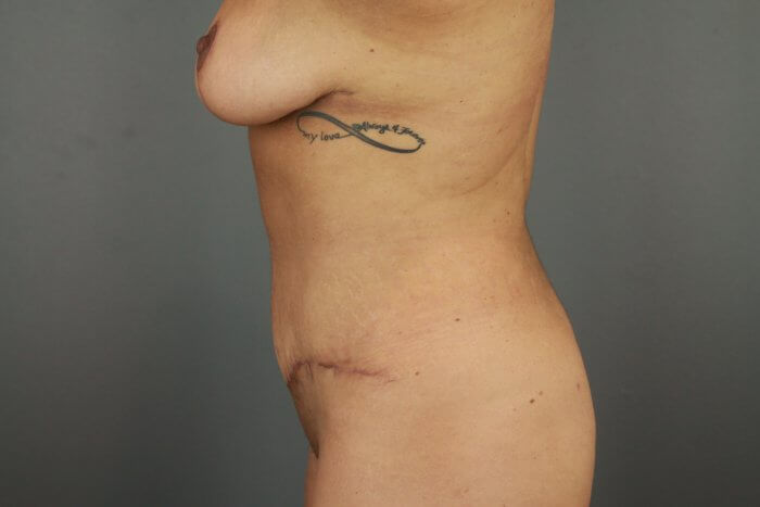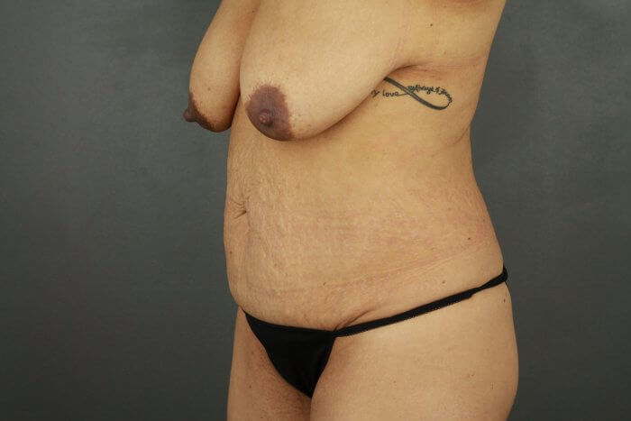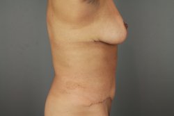 This is a 39 year-old female who complained of saggy breasts that were much larger than desired. Her breasts were double D-Cup and she desired a C-Cup. She has had 4 children to include a set of twins and in addition has recently lost 50 pounds. She works out a great deal, runs and she finds her breasts to be cumbersome. She also complained of extra skin on her abdomen from the pregnancies and C-Section deliveries and desired a tighter tummy. She underwent a mommy makeover and had post-operative photos taken 4 months after her procedure.