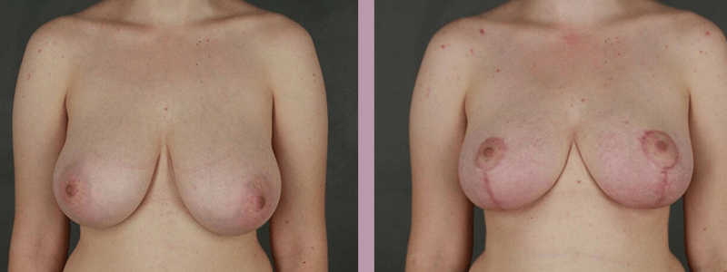 This is a 23 year-old patient who came to Dr. Flint with a family history of large, heavy, droopy breasts. Both her mother and grandmother had to undergo breast reduction surgery. This patient went from an H-cup to a desired C-cup. Her post operative photos were taken just under three months after surgery. Her scars will continue to heal and fade nicely over the course of a year.