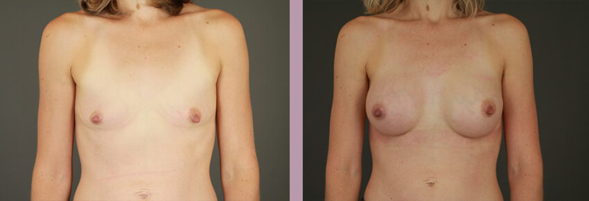 This is a 33 year-old female who desired breast augmentation. She was an A-minus cup and desired to be a B to a C. She specifically stated she wanted a natural appearance in proportion to her frame. Her post-operative photos were taken four months following her procedure.