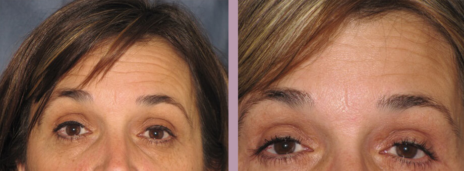 This is a 50 year-old who had 50 units of Botox to her corrugator and crows feet region. She also had 2 syringes of Juvederm Ultra Plus to the nasolabial folds and marionette lines.