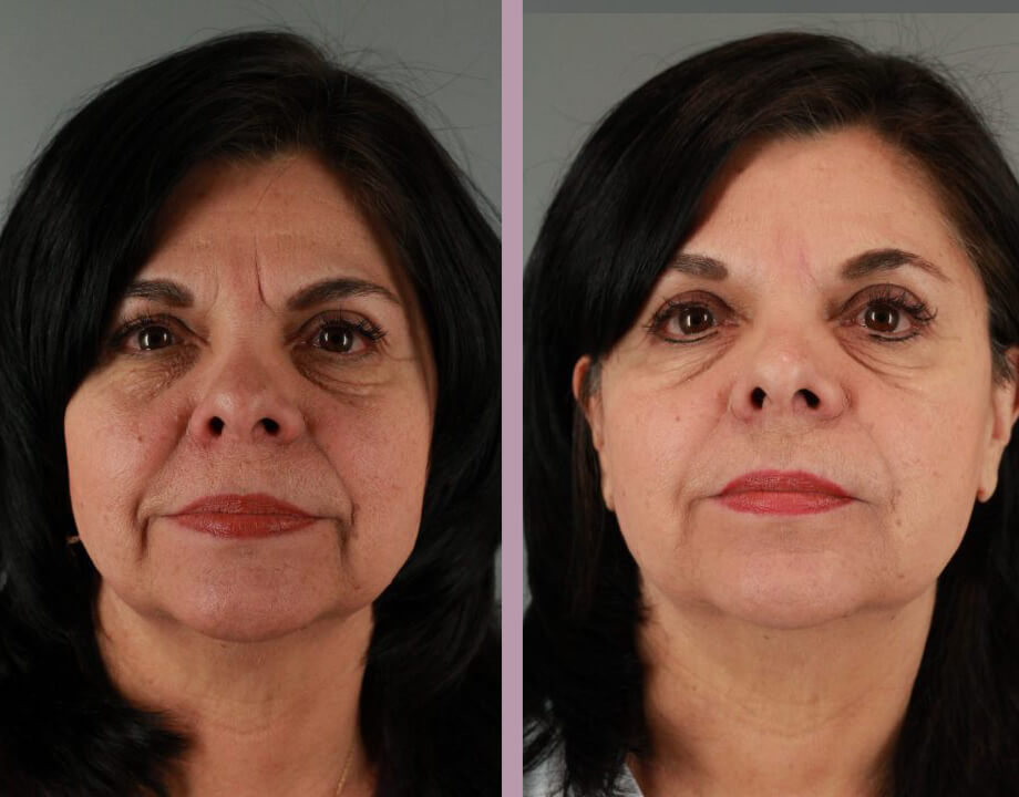 This is a 62 year-old female that disliked the wrinkling around her eyes and wanted an improved appearance. Dr. Flint recommended and used Botox to treat her crow's feet, between her eyebrows, and around the corners of her mouth. Dr. Flint also used two syringes of Juvederm in her nasolabial folds and around mouth. Her post photos were three weeks following her treatment.