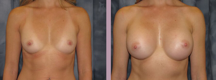 This 29 year-old is 5'4 and 111 pounds. She was a B cup and wanted to be a C cup. She underwent a breast augmentation with 300 cc and 325 cc silicone implants.