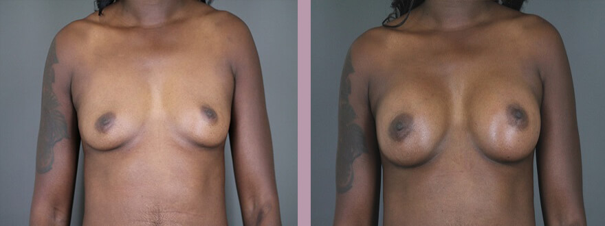 This is a 25 year-old who underwent breast augmentation. She was an A cup and desired a C cup. She is 5'6 and weighs 125 pounds. Her post-operative photos were taken one month following her surgery.