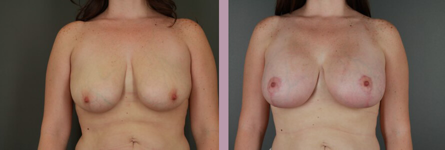 This is a 29 year-old that reported her breasts had been droopy her entire life. She felt they got worse after childbearing. She underwent a breast augmentation with a mastopexy. Moderate plus profile silicone implants were used with a 304 cc implant on the left and a 286 cc implant on the right. Her post-operative photos were taken four months following her procedure.
