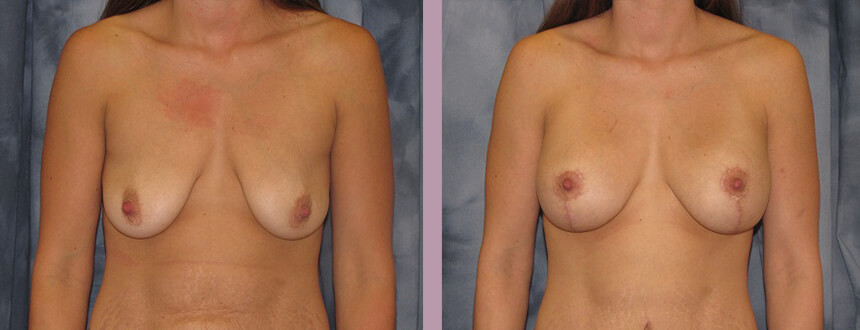 This is a 28 year-old who desired perkier breasts. She felt after breast feeding for two years, her breasts had become like empty sacks. She underwent breast augmentation with a lift. High profile 325 cc silicone implants were selected. Her post-operative photos were taken eight months following her surgery.