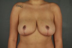 This 30 year-old mother of 2 came to Dr. Flint desirous to have the shape she used to have prior to children. She wanted to downsize her breasts from a 34 triple-D to a C-cup, also in hopes of alleviating some of her daily back and neck pain. In addition she wanted some of her stubborn excess fat removed from her underarms, abdomen, flanks, and back rolls. She is thrilled with her results! Her after photos were taken 4 months post surgery, and she will continue to see improvement in her scars and swelling over the course of a year.