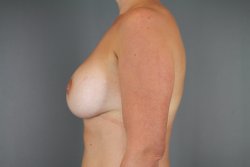 This is a 34 year-old female who had mild asymmetry. She breast fed and reported a 40-pound weight loss. She was a 34-B and desired to be a small “D” cup size. For the right side a silicone moderate plus profile 339 cc implant was selected and for the left side a 304 cc implant was selected. Her post-operative photos were taken three months following her surgery.