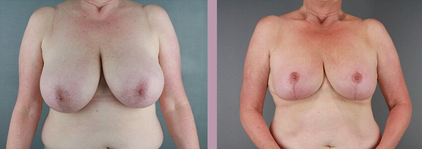 This is a 54 year-old female who wanted smaller breasts for many years. She complained that her breasts were very large and saggy. She was a 36G and after the procedure she is wearing a 36C. Her post-operative photographs were taken at her 4 month post procedure appointment.