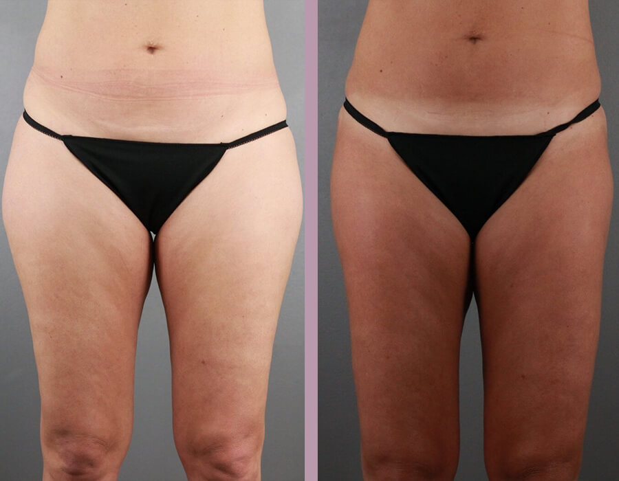 This is a 47-year old female who complained of fatty deposits on her inner and outer thighs resistant to diet and exercise. Dr. Flint performed liposuction to improve the contour of her thighs. The post-operative photographs were taken 3 months post procedure.