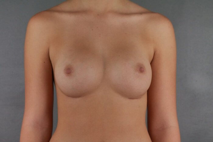 This is a 19 year-old female who desired breast augmentation. She was an A-cup and desired a C-cup and felt like her breasts were pretty symmetric. Dr. Flint used high profile silicone 345cc implants. Her post-operative photographs were taken 4 months following her surgery.