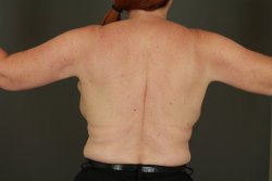 This 62 year-old disliked her saggy arm skin that was not improving with diet and exercise. Dr. Flint recommended and performed an arm lift. Her post operative photos were taken almost 3 years post surgery.