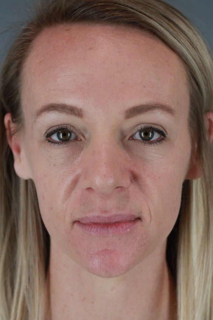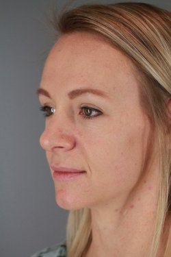 This active 35 year-old mother of five came to Dr. Flint to discuss her options for a rhinoplasty. She desired improvement to remove the hump on the bridge of her nose, have a less bulbous tip, and overall more petite nose to match her frame. Her post-operative photos were taken 14 weeks following surgery.