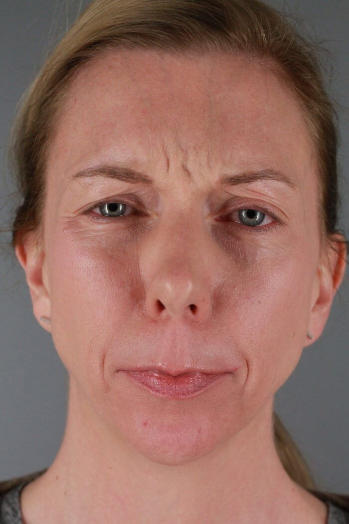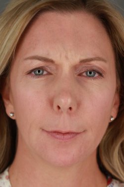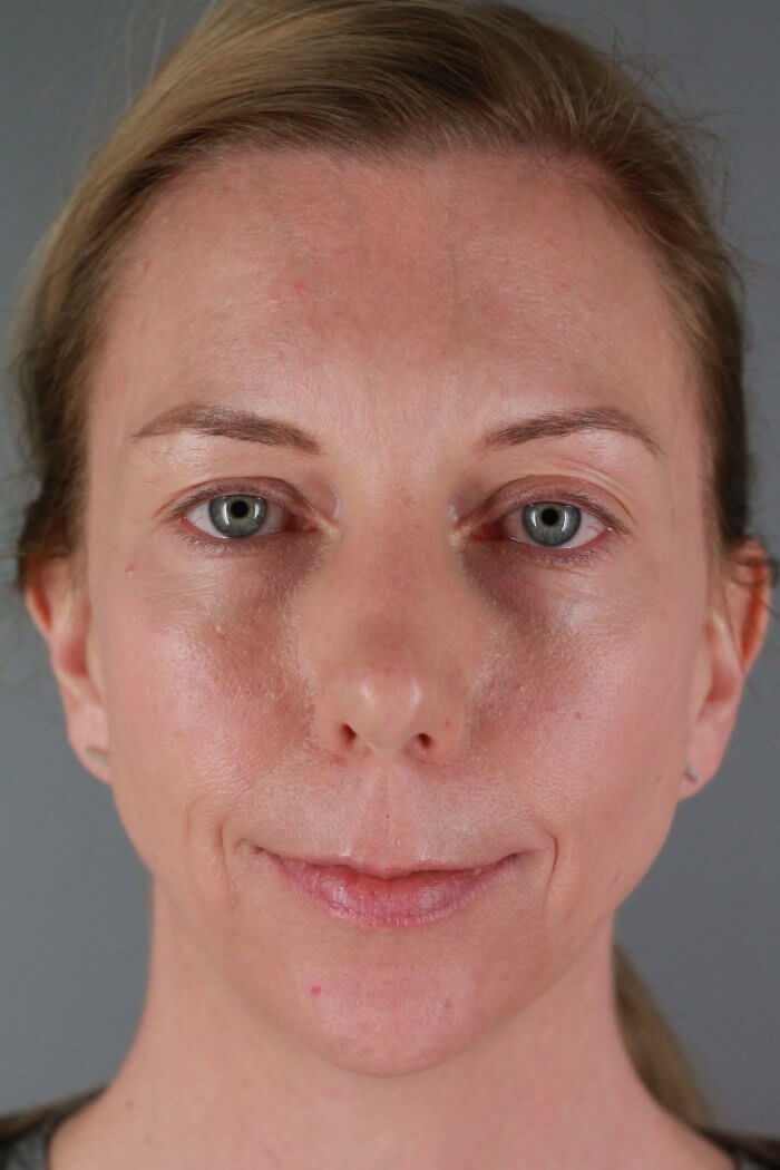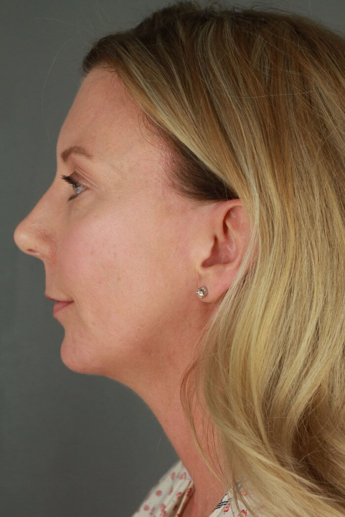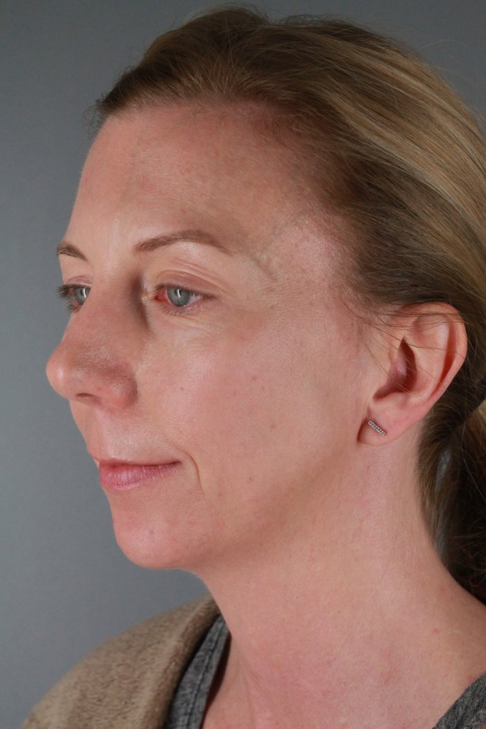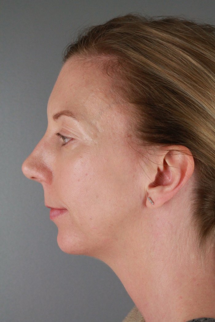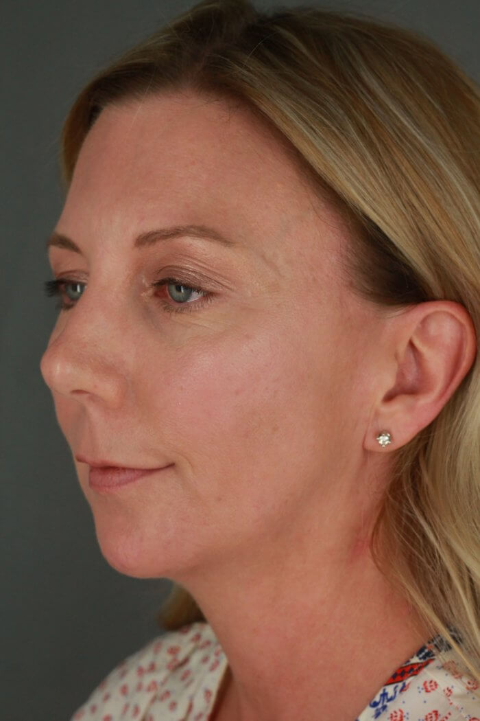 This 43 year-old professional woman came to the practice wanting to improve her chin projection and wrinkles around her mouth. Voluma was used to build modest projection for her chin, while Vollure was used to soften lines around her mouth. Voluma was used in the mid cheeks and Volbella used in her tear troughs for a less tired appearance. Botox injections were used to minimize her jaw muscles in order to give her an overall more balanced facial shape. She also started our medical grade skin care, SkinCeuticals for a smoother complexion and for enhanced protection against skin cancer. Her photos were taken 17 months after starting her regimen.