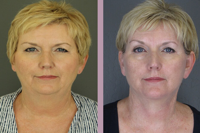 This is a 61 year-old who disliked her full neck and lack of definition on her jawline. She underwent a facelift and juvederm injections. Her post-operative photos were taken three months following her surgery.