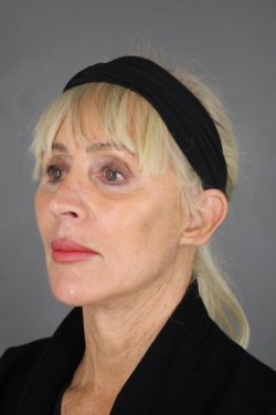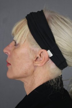 This is a 72 year-old female who came to see Dr. Flint for the removal of her excess neck skin as well as bilateral earlobe shortening. This patient maintains a very outdoor lifestyle, which in turn has led her to be in the sun regularly. Dr. Flint achieved this final look by way of bilateral Facelift and bilateral Earlobe Shortening. After photos were taken 4 months post surgery.