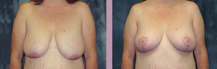 This is a 45 year-old who had lost 56 pounds and disliked the droopiness of her breasts. She reported that her left breast had always been larger. She had a breast lift performed. Her post-operative photos were taken three months following her procedure.
