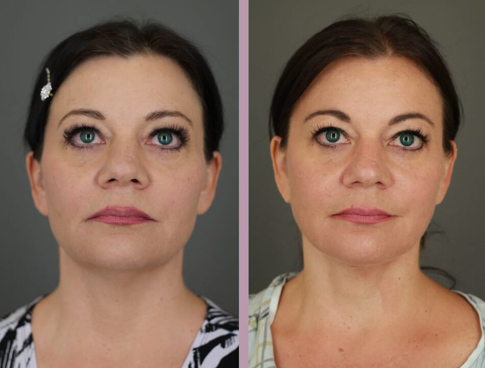 This is a 46 year-old woman who had lost 113 pounds with Roux-En-Y gastric bypass. She felt that after her weight loss she had developed a saggy neck. Dr. Flint recommended, with her minimal amount of excess submental fat paired with the fact she did not have jowling, that a neck lift be performed. Her post-operative photos were taken 14 weeks following her surgery.
